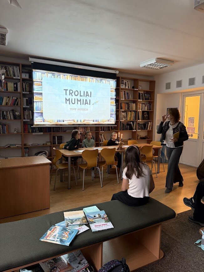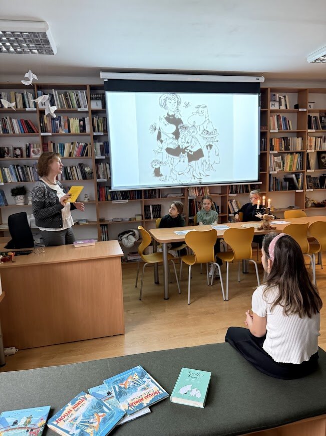 Bibliotekininkė Daiva mokiniams pristatė šių šalių rašytojus, jų kūrybos ypatybes bei garsiausius personažus. Ji papasakojo apie trolius Mumius ir jų autorę Tuvę Janson, kurios knygos jau daugelį metų džiugina tiek vaikus, tiek suaugusiuosius.