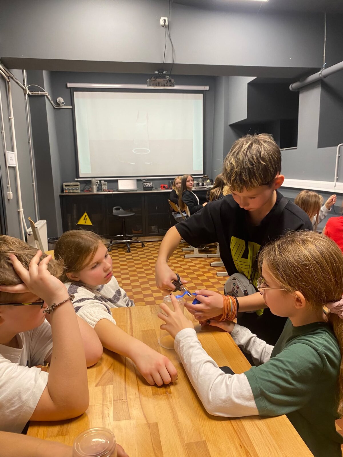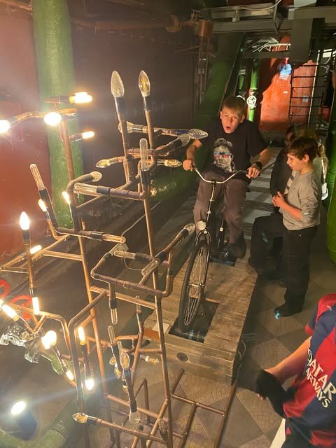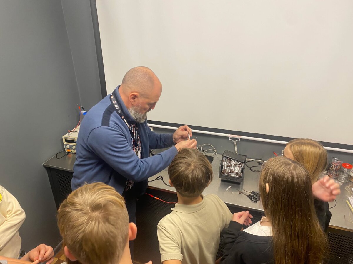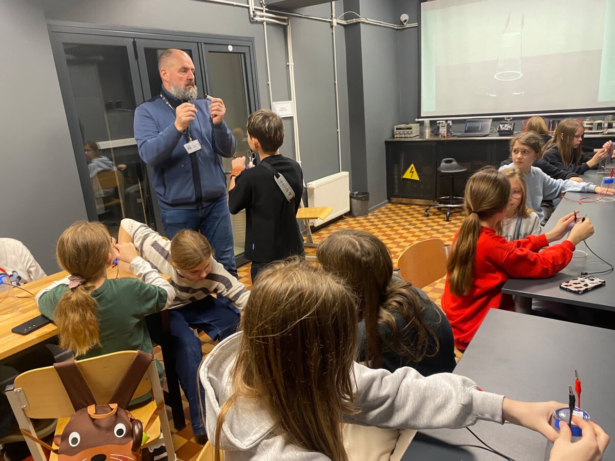 Spalio 31 d. 5b klasės mokiniai vyko į Energetikos ir technikos muziejų. Ten jie dalyvavo įdomioje edukacijoje „Kaip Tomas įžiebė lemputę?“, kur sužinojo, kada ir kaip atsirado elektra ir kas pirmasis įžiebė šviesos lemputę. Vaikai galėjo patys atlikti bandymus ir pamatyti, kaip veikia elektros grandinė. Visiems labai patiko galimybė paliesti tikrus eksponatus ir išbandyti, kaip sukasi generatoriai. Po edukacijos klasė pietavo muziejaus terasoje ant stogo, nuo kurios atsivėrė gražus vaizdas į Gedimino pilį ir senamiestį. Vėliau mokiniai išbandė įvairius techninius atrakcionus – skraidančią kėdę, dviračius ore ir kitus interaktyvius prietaisus. Buvo daug juoko ir azarto. Visi sutiko, kad tai buvo ne tik smagi, bet ir labai įdomi bei naudinga išvyka. Grįždami į mokyklą penktokai dar ilgai kalbėjo apie šią kelionę ir naujai sužinotus dalykus apie elektrą.