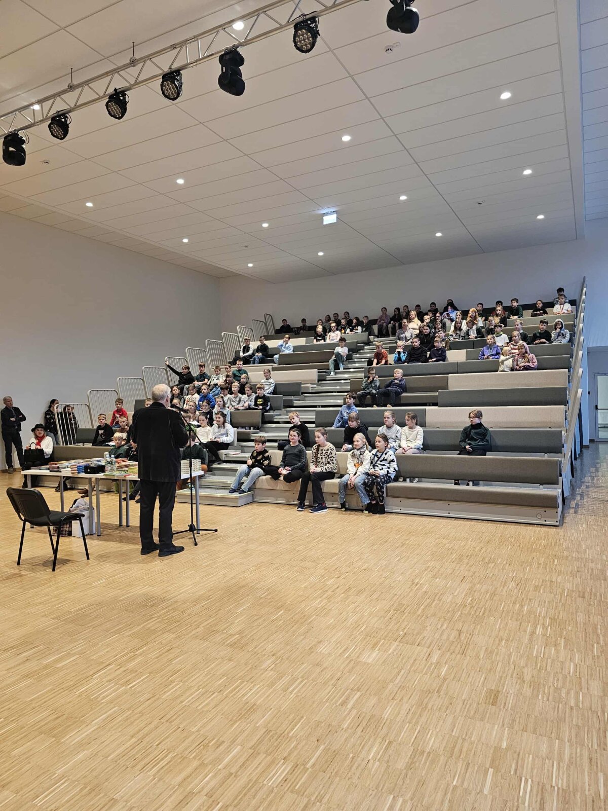 Lapkričio 14 d. mokyklos renginių salėje vyko jaukus ir įkvepiantis susitikimas su žinomu vaikų ir paauglių literatūros rašytoju Vytautu Račicku. Susitikime su rašytojų dalyvavo 2c, 3b, 3c, 4a, 4b klasės.
