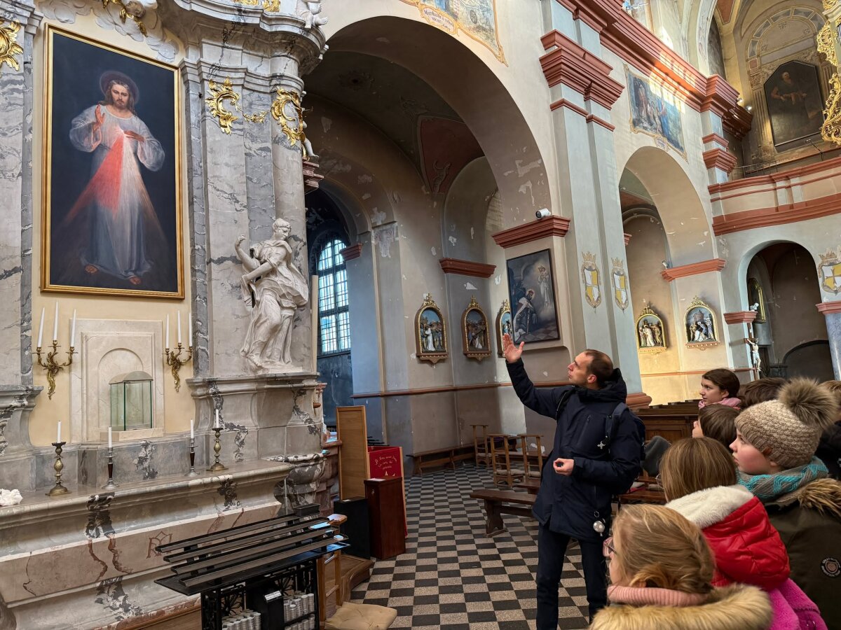 Svečiuodamiesi mokiniai turėjo išskirtinę galimybę apžiūrėti bažnyčioje kabančius šventus paveikslus, susipažinti su jų istorijomis, o vėliau buvo pakviesti į parapijos namus – erdves, į kurias ne kiekvienam pavyksta užsukti. Šis netikėtas susitikimas tapo ypatingu akcentu, palikusiu gilių įspūdžių ir dar labiau praturtinusiu Kalėdų laukimo stebuklą.