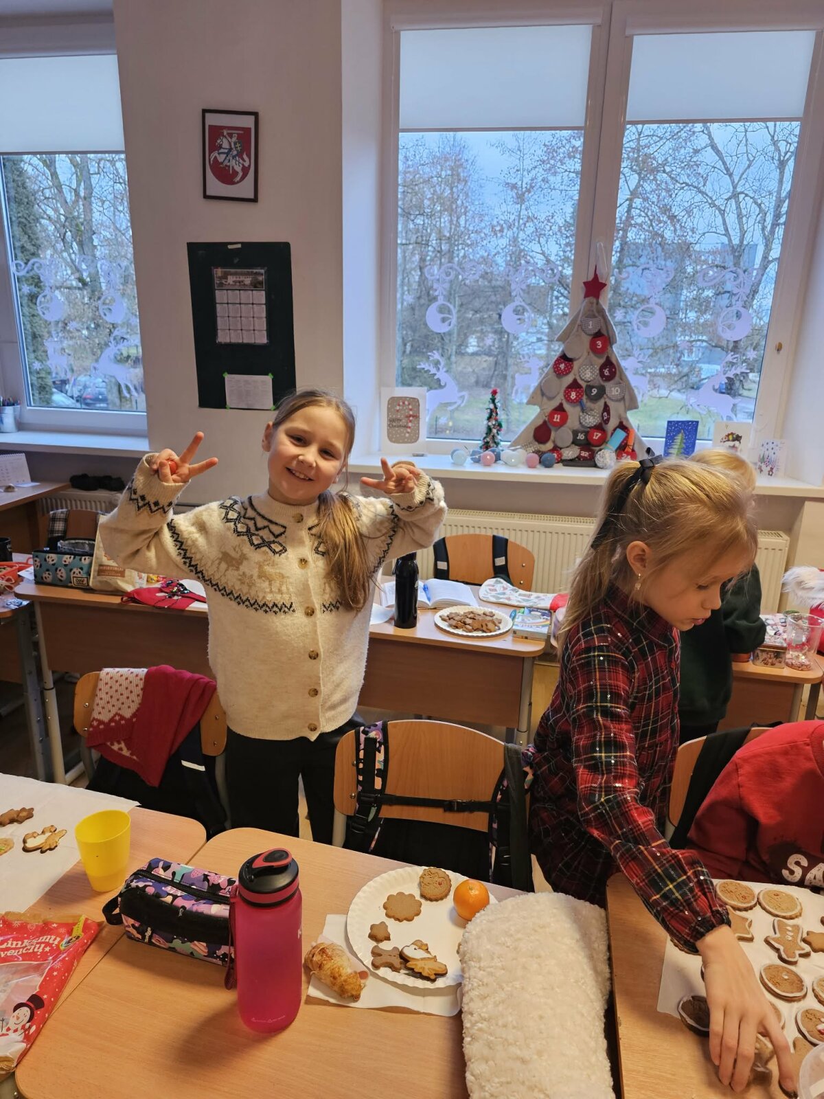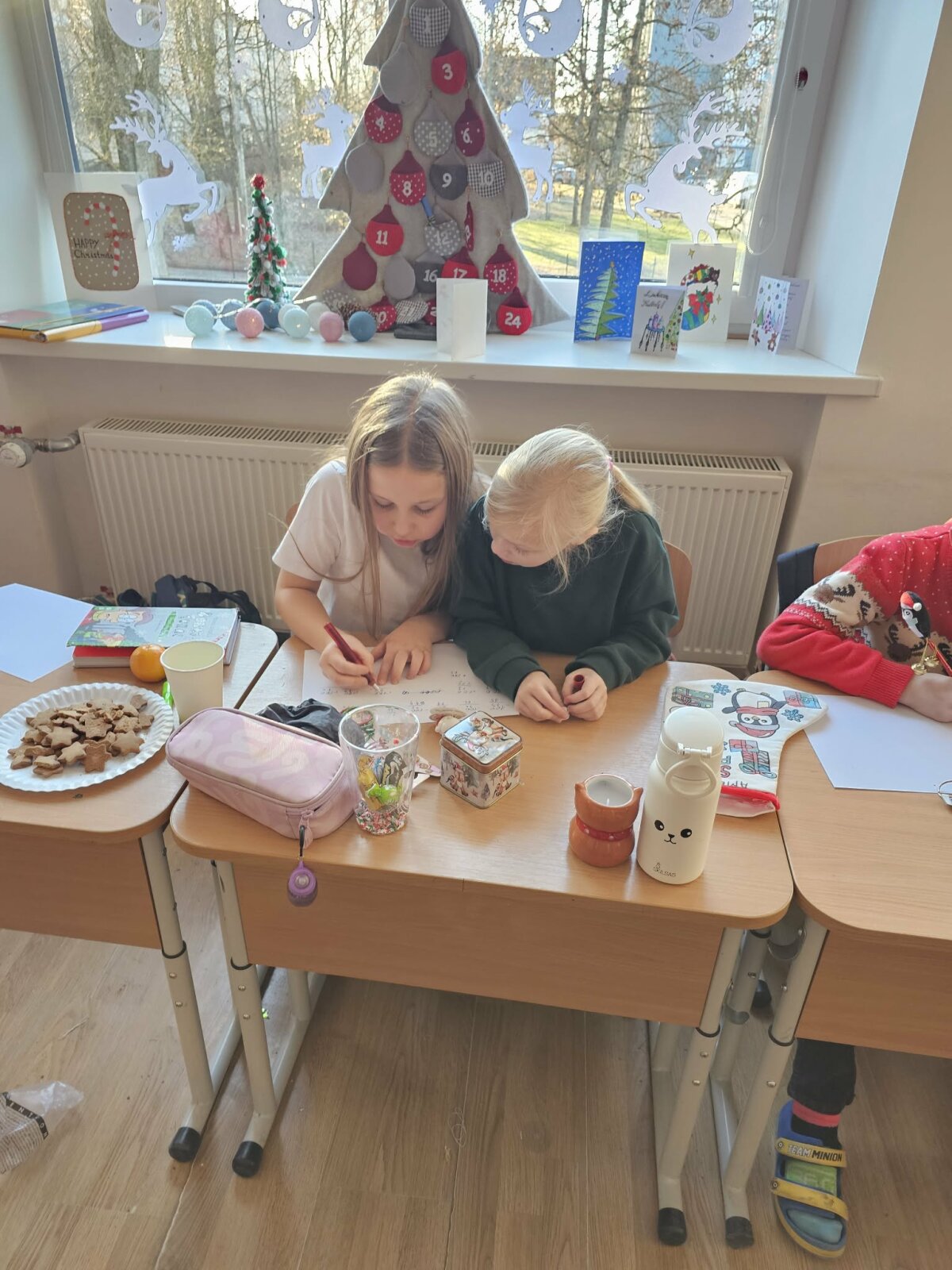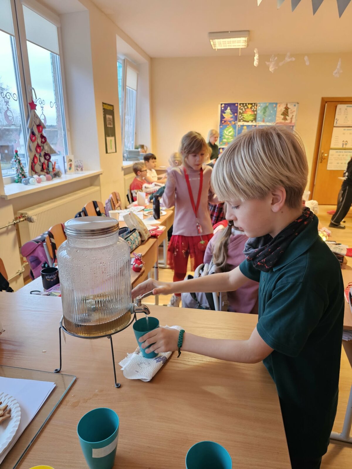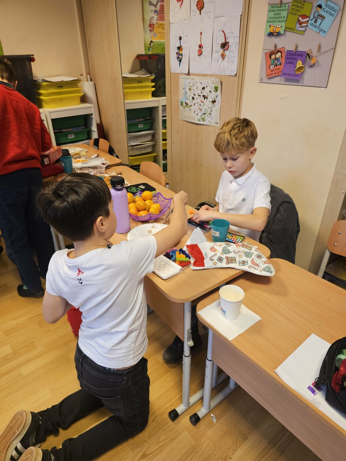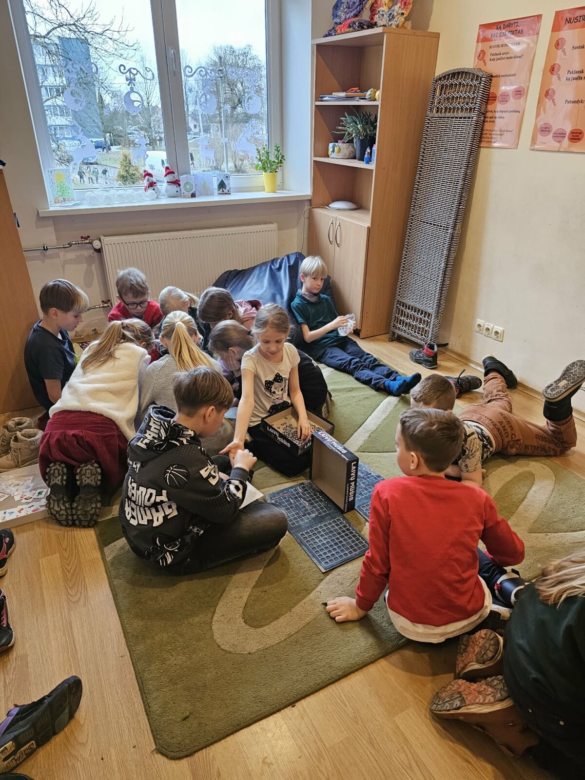 Pertraukų metu mokiniai žaidė atsineštus stalo žaidimus, gėrė karštą arbatą ir vaišinosi imbieriniais sausainiais.