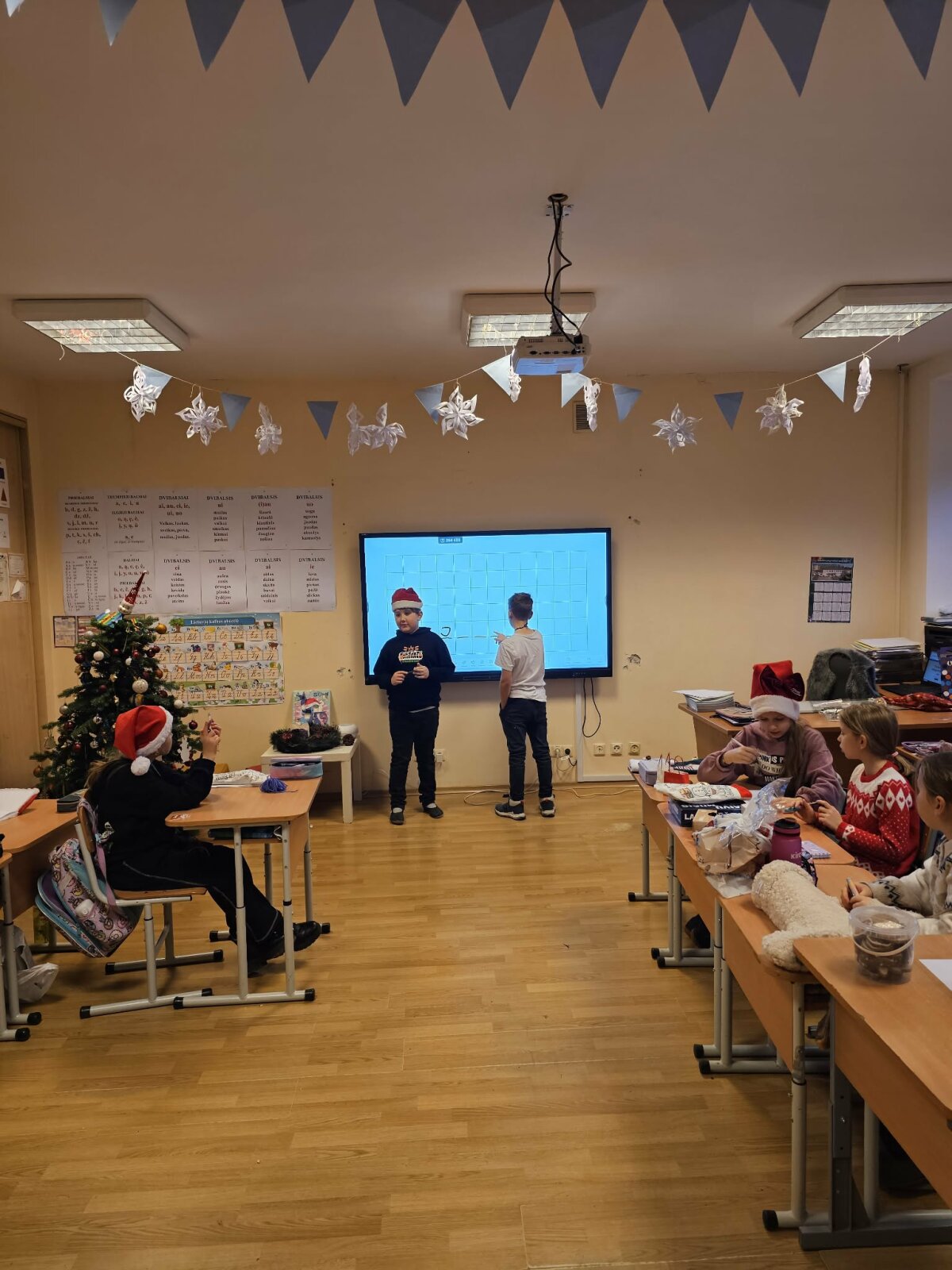 Visuomeninio ugdymo pamokoje mokiniai linksmai žaidė interaktyvų žaidimą „Kahoot! – Kalėdinis šiupinys“. Jie atsakinėjo į įvairius klausimus iš matematikos, lietuvių kalbos, visuomeninio ugdymo ir gamtos mokslų. Pamoka praėjo greitai, įdomiai ir smagiai.