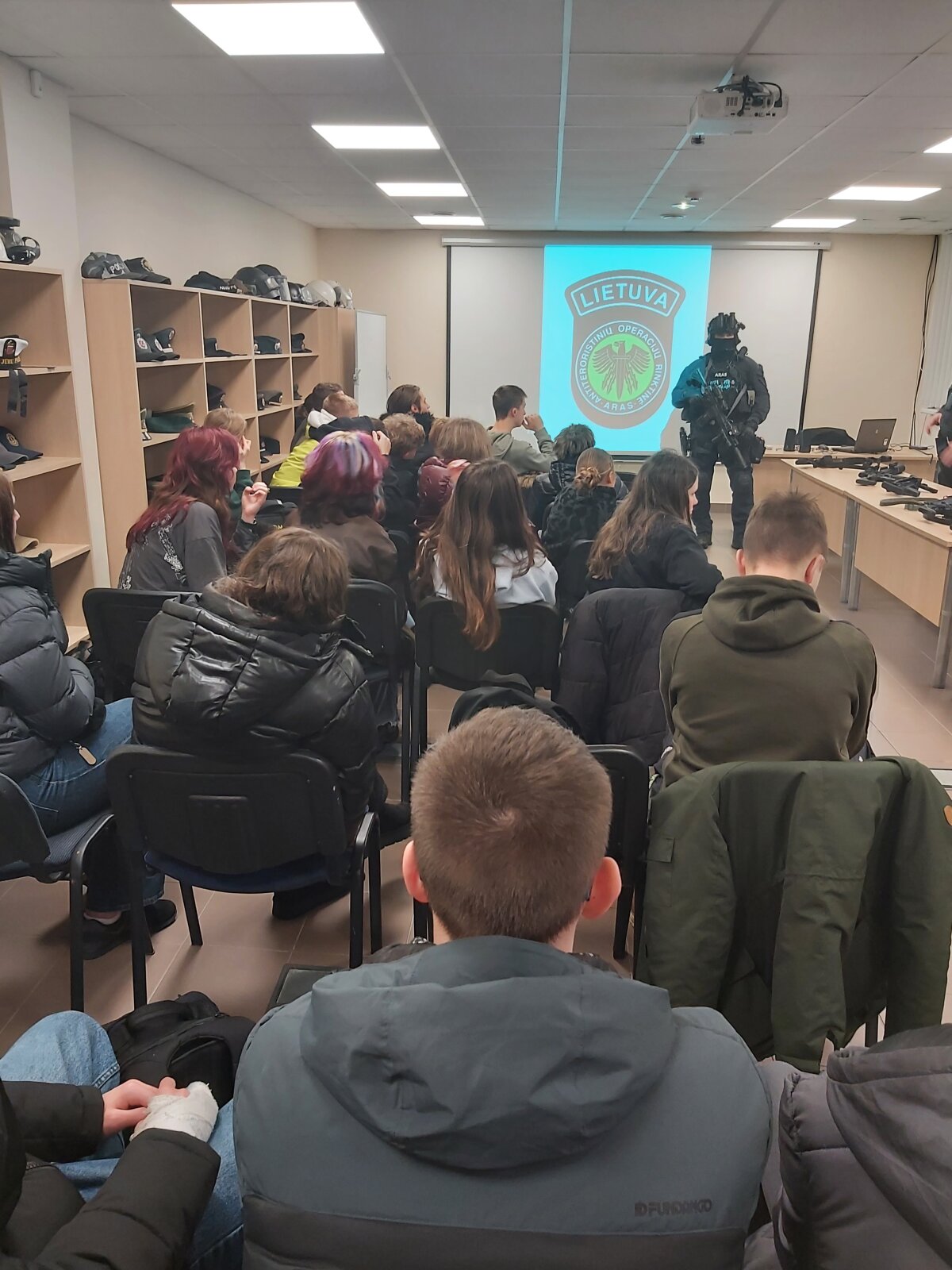 Turbūt įsimintiniausia šių metų „Pamokos kitaip“ patirtis 9 klasės mokiniams buvo išskirtinė galimybė praverti elitinės Lietuvos policijos antiteroristinių operacijų rinktinės „Aras“ būstinės duris ir iš arti susipažinti su jau 30 metų vykdoma ypatinga misija.