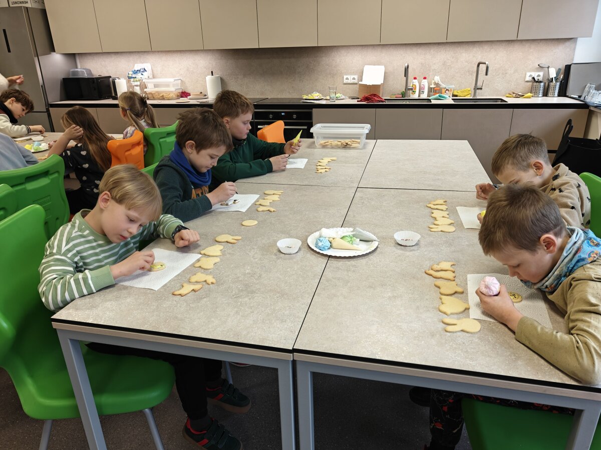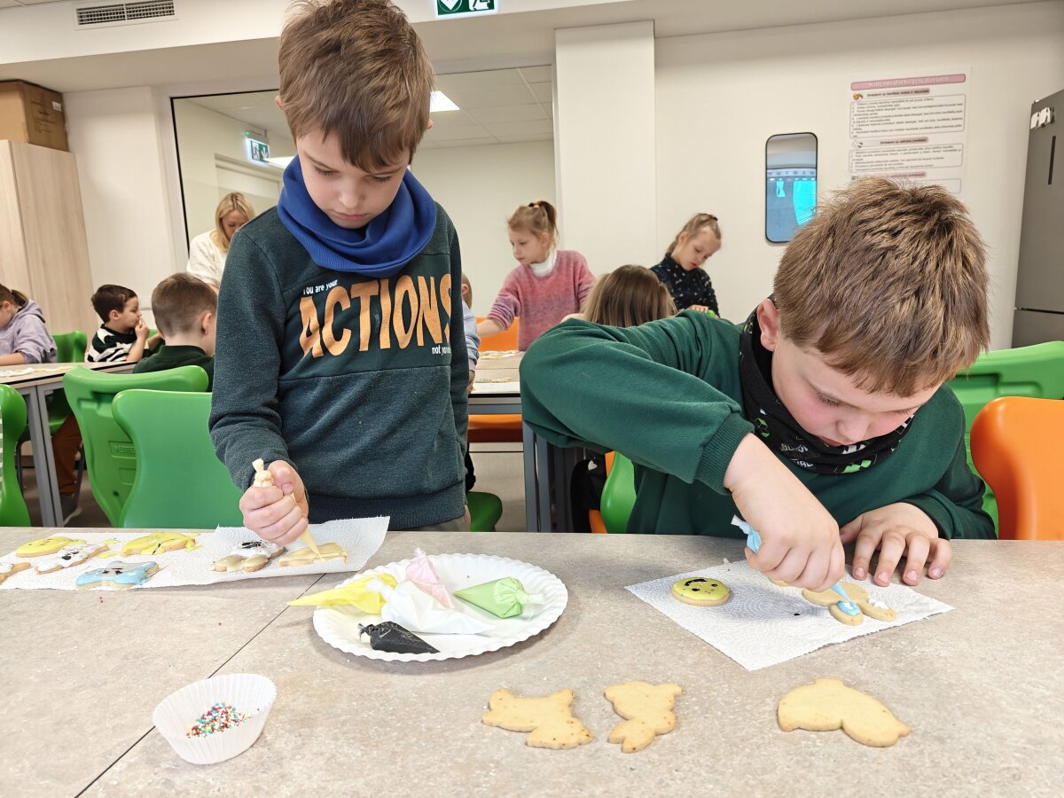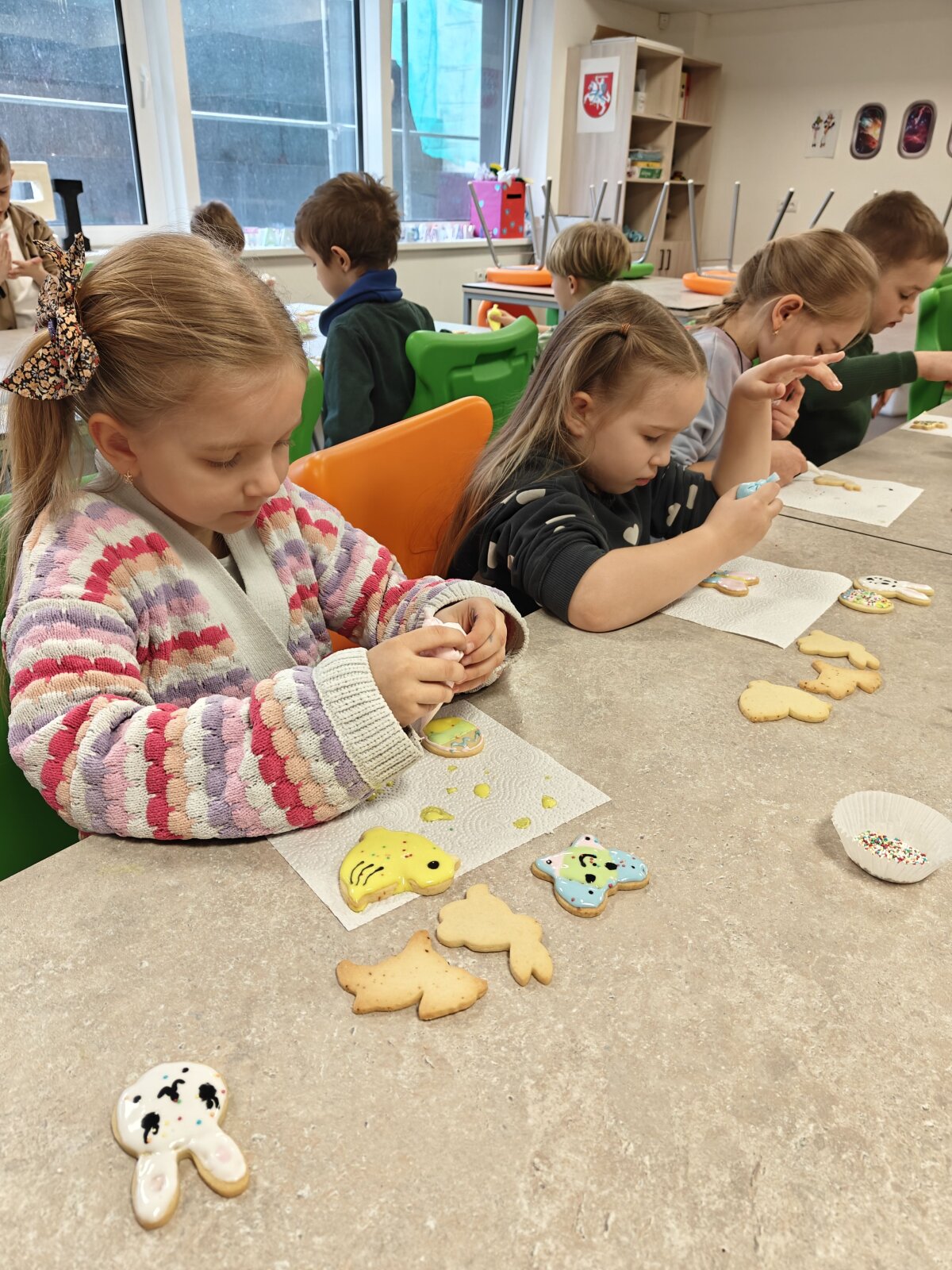 Mokiniai susipažino su sausainių dekoravimo pagrindais, mokėsi naudoti skirtingas spalvas ir paprastus dekoravimo būdus, atskleidė savo kūrybiškumą dekoruodami sausainius pavasario ir Velykų motyvais – kiaušiniais, zuikučiais, morkytėmis, gėlytėmis, drugeliais.