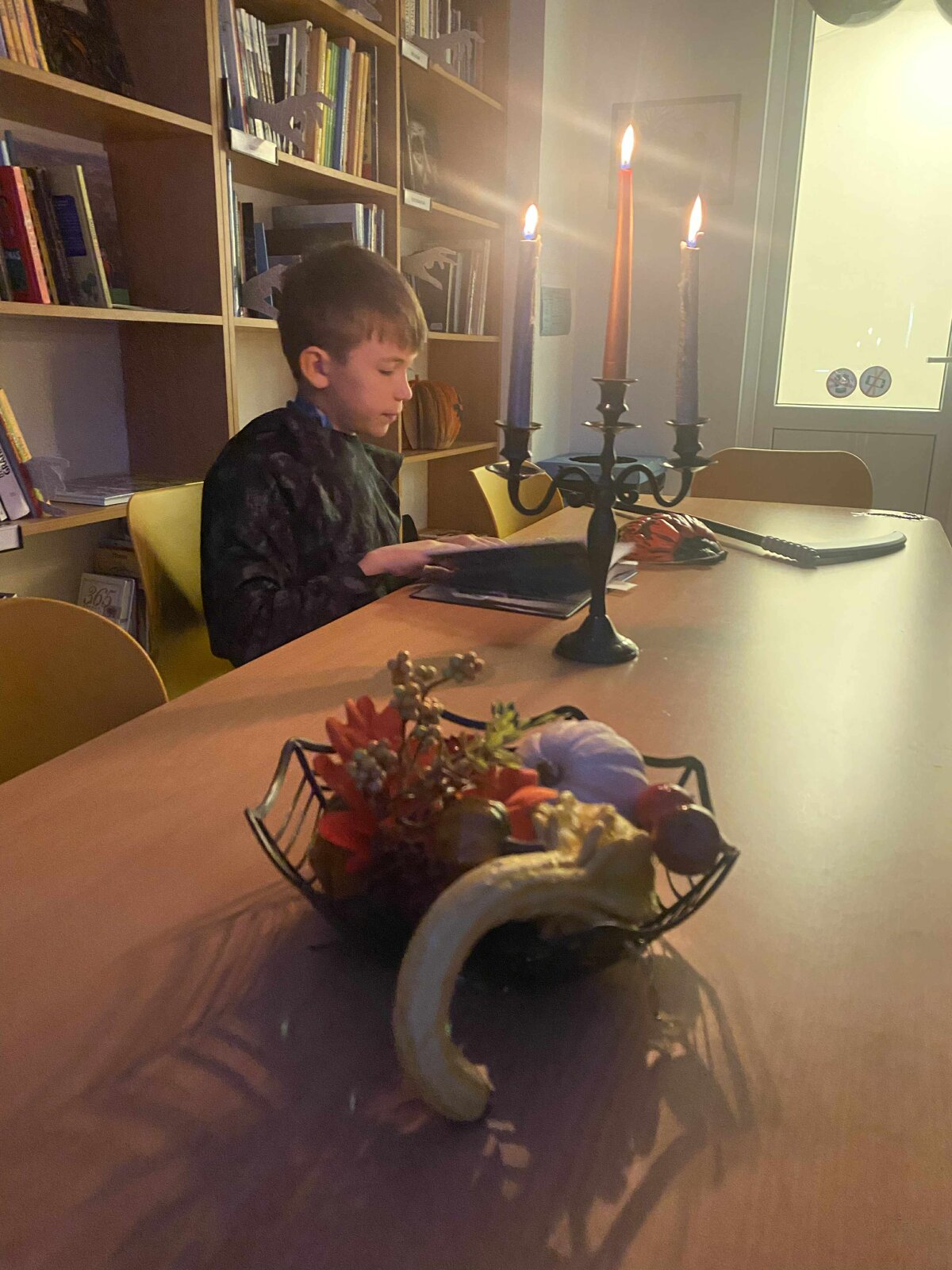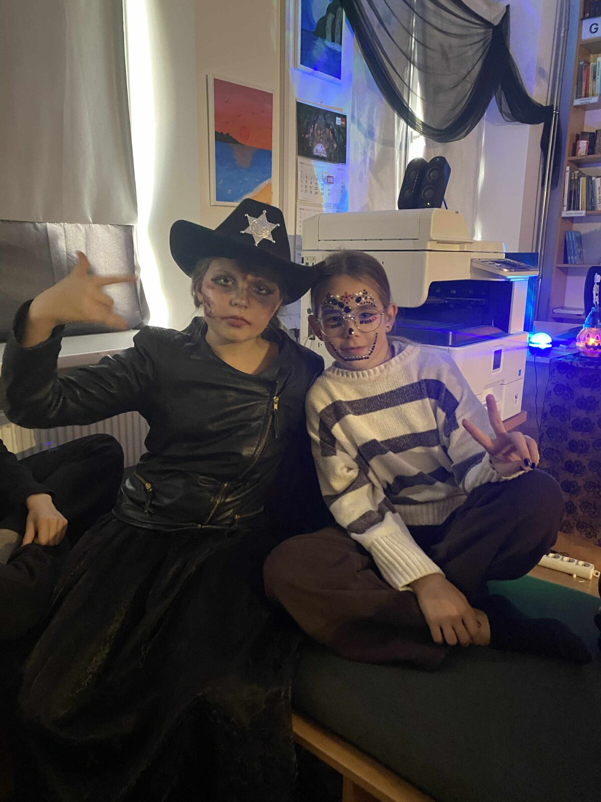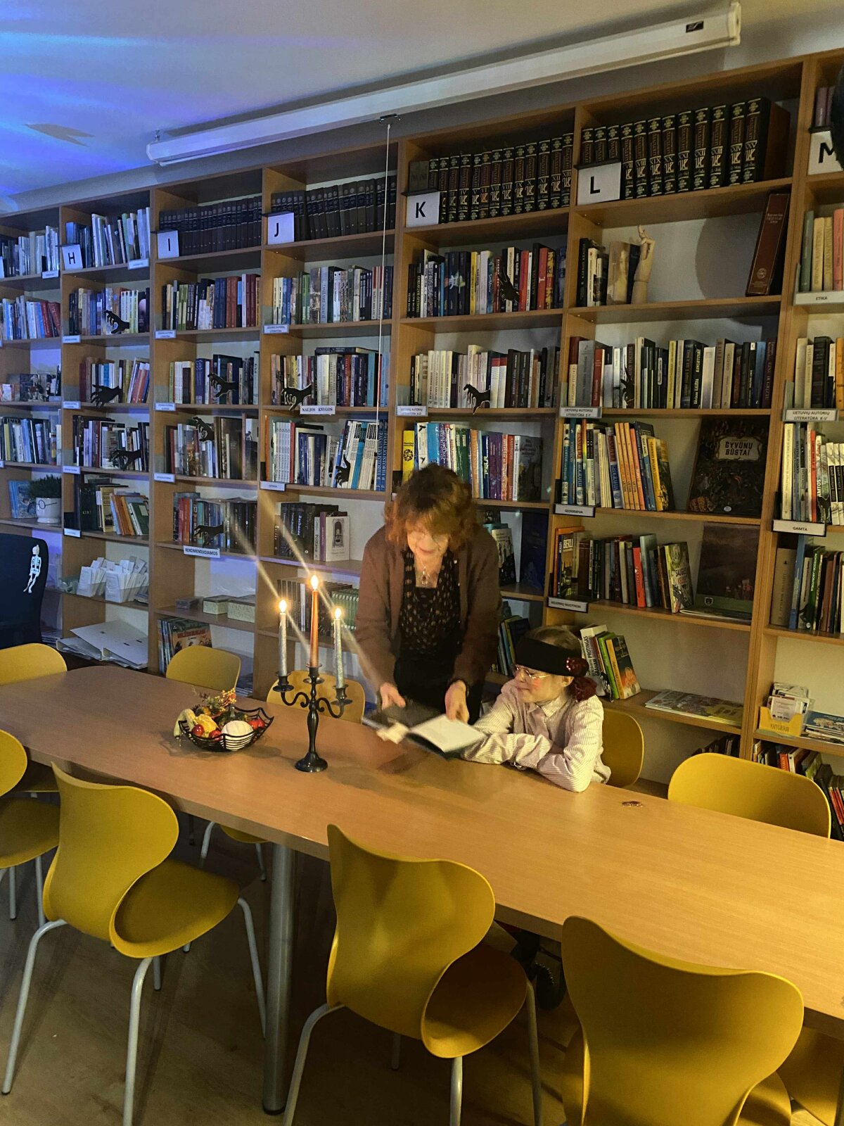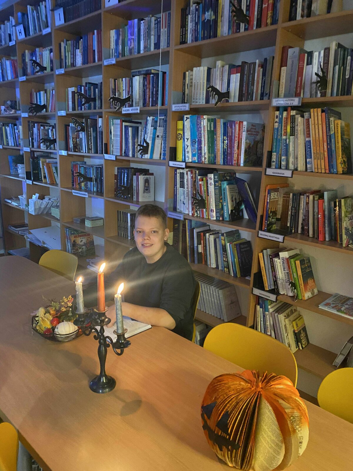 Bibliotekoje tvyrojo tikra Helovino dvasia – tamsi, bet kupina kūrybos ir vaizduotės. Dėkojame bibliotekininkei Daivai, kuri pakvietė mokinius į šią nuostabią patirtį, pasirūpino bauginančia atmosfera ir visus pavaišino gardžiais sausainiais bei saldainiais. Visi dalyviai išėjo su šypsenomis ir pažadu dar ne kartą sugrįžti į kraują stingdančių istorijų pasaulį.