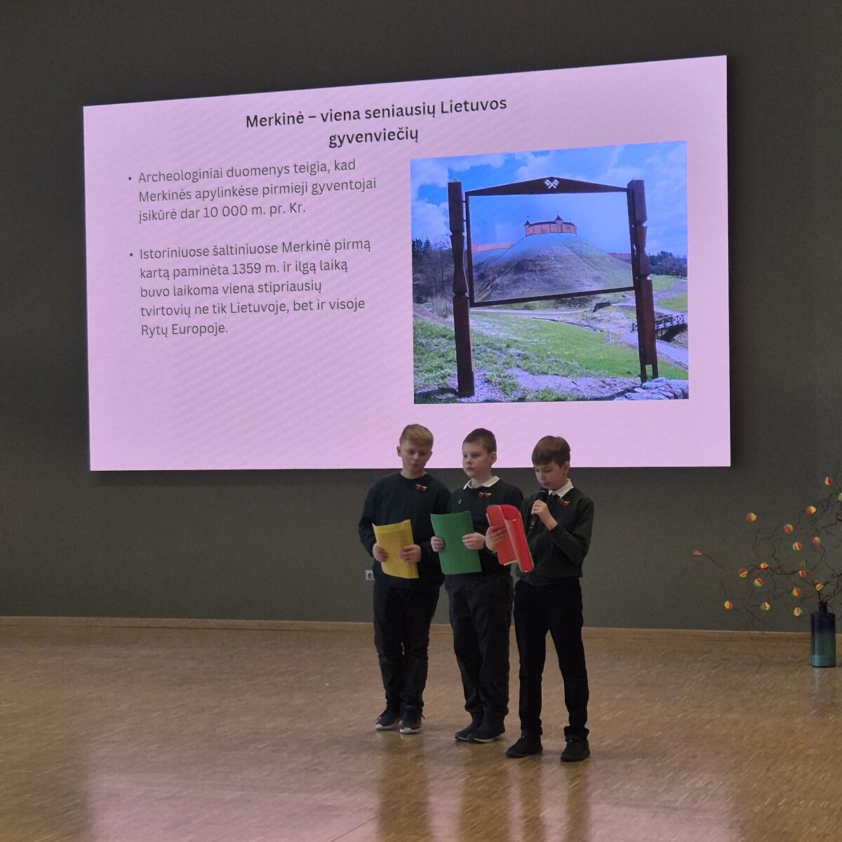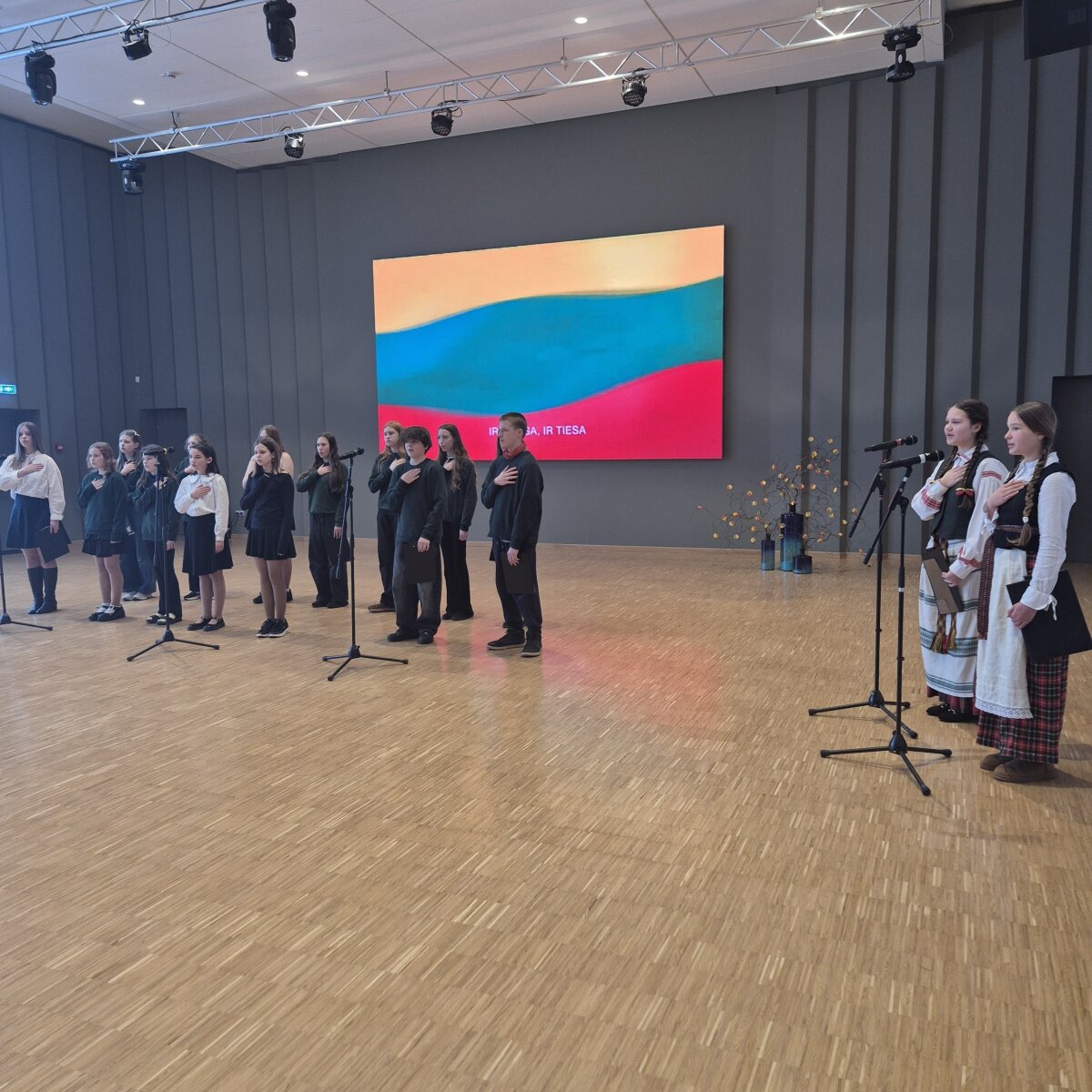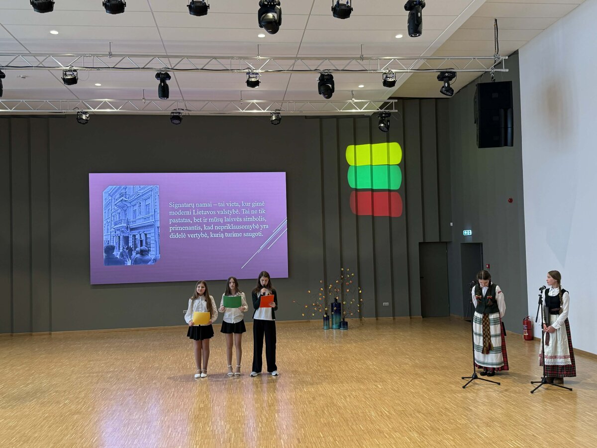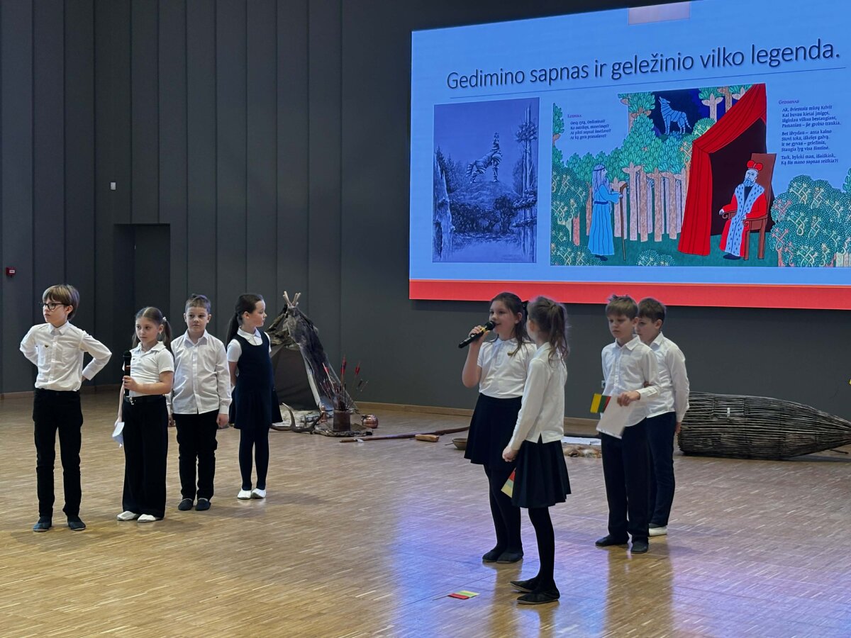 1-9 klasių mokiniai pristatė savo parengtus projektinius darbus apie Lietuvai istoriškai svarbias vietas, skambėjo patriotiškos dainos, įteiktos padėkos mokyklos pažangiausiems mokiniams.