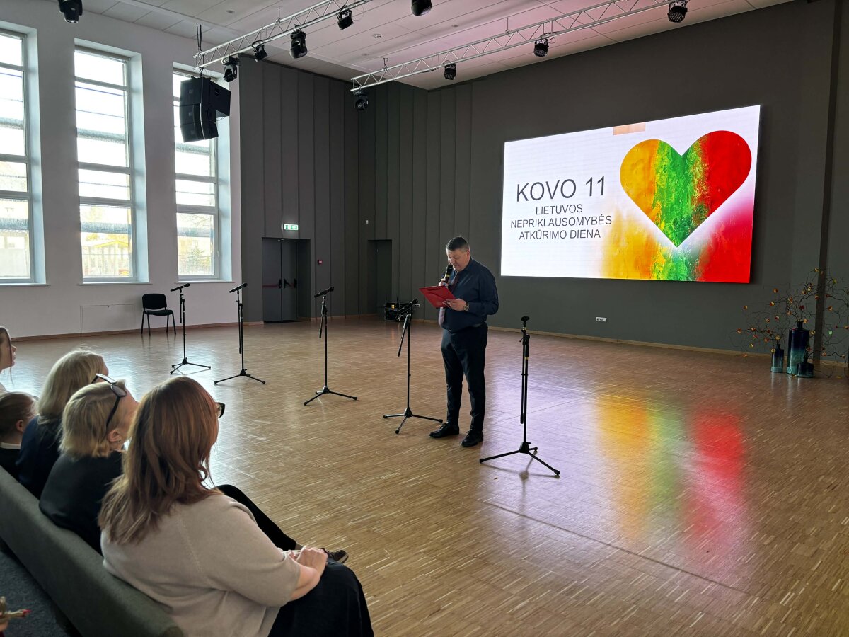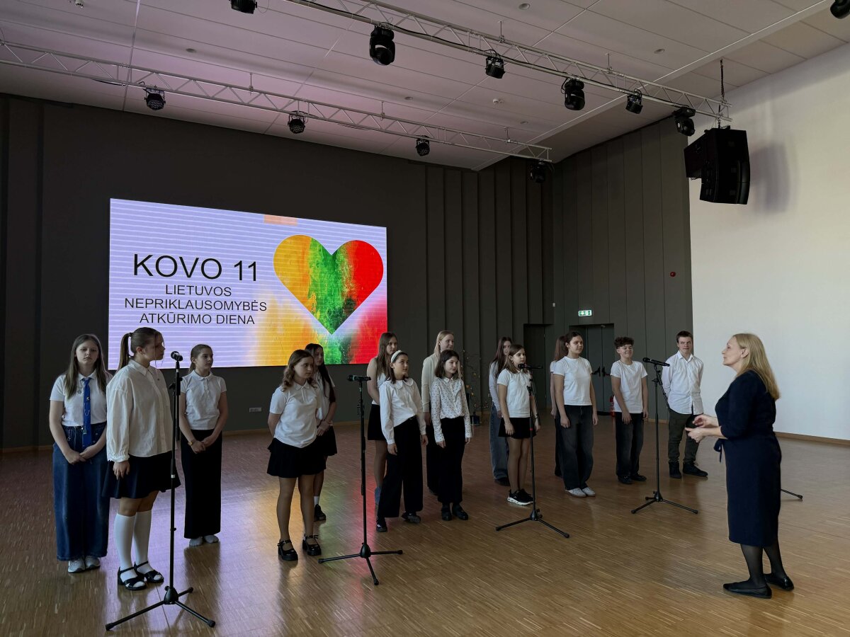 Šventinę nuotaiką kūrė mokyklos jaunių choras. Renginio dalyviai taip pat žiūrėjo informatyvų filmuką apie Lietuvos nepriklausomybės atkūrimą, padėjusį dar geriau suprasti šios dienos reikšmę mūsų valstybei.