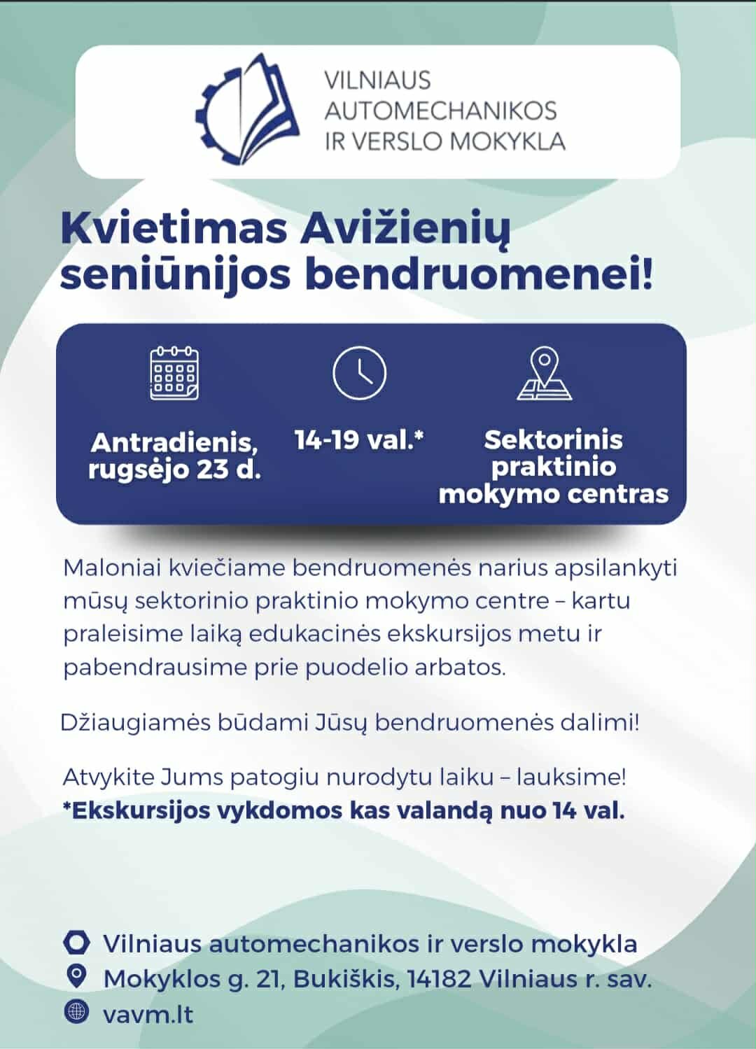 VILNIAUS AUTOMECHANIKOS IR VERSLO MOKYKLOS KVIETIMAS!